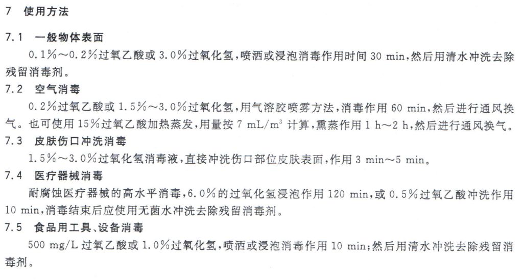 過氧化氫消毒劑使用方法(出自 過氧化物類消毒液衛生要求 GB/T 26371-2020):