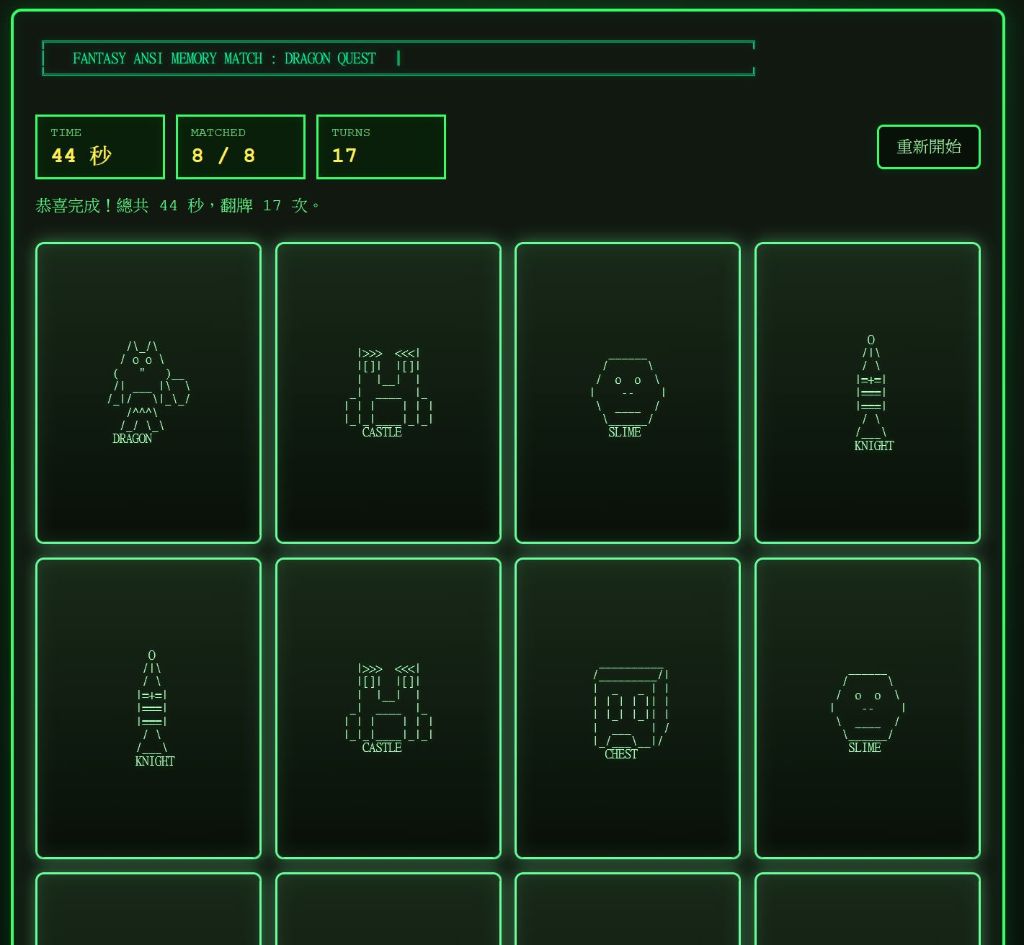 setMessage(`恭喜完成!總共 ${seconds} 秒,翻牌 ${turns} 次。`, "var(--match)");