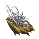 炼化石 这块多刺的烁石看似价值不菲,被置于心骨峪中 探掘者 的废弃巢穴里,一个充满奇怪液体的房间里的石柱之上。它散发出的气味既奇特又刺鼻。